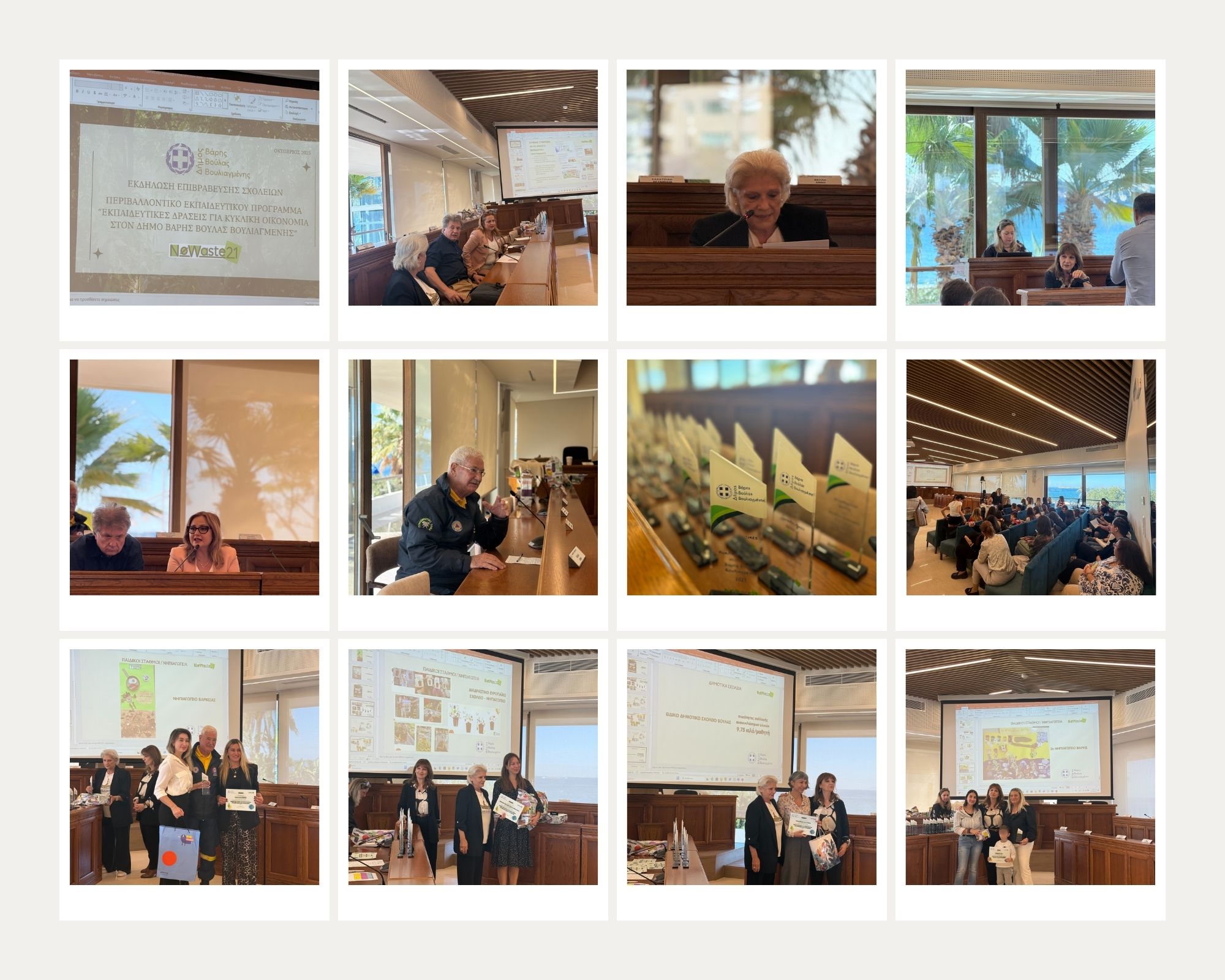 Ολοκληρώθηκε με την τελική εκδήλωση επιβράβευσης στις 14 Οκτωβρίου το εκπαιδευτικό πρόγραμμα με τίτλο ''Εκπαιδευτικές δράσεις για Κυκλική Οικονομία στον Δήμο Βάρης Βούλας Βουλιαγμένης'' για τα σχολεία του Δήμου. Στην εκδήλωση η οποία πραγματοποιήθηκε στην αίθουσα συνεδριάσεων του Δημαρχείου παρευρέθηκαν εκπρόσωποι του Δήμου όπως επίσης μαθητές και εκπαιδευτικοί από τα σχολεία που συμμετείχαν στο πρόγραμμα.